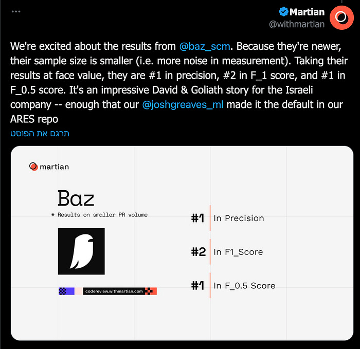 The performance was so impressive that the Martian team actually made Baz the default reviewer for their own ARES repository.